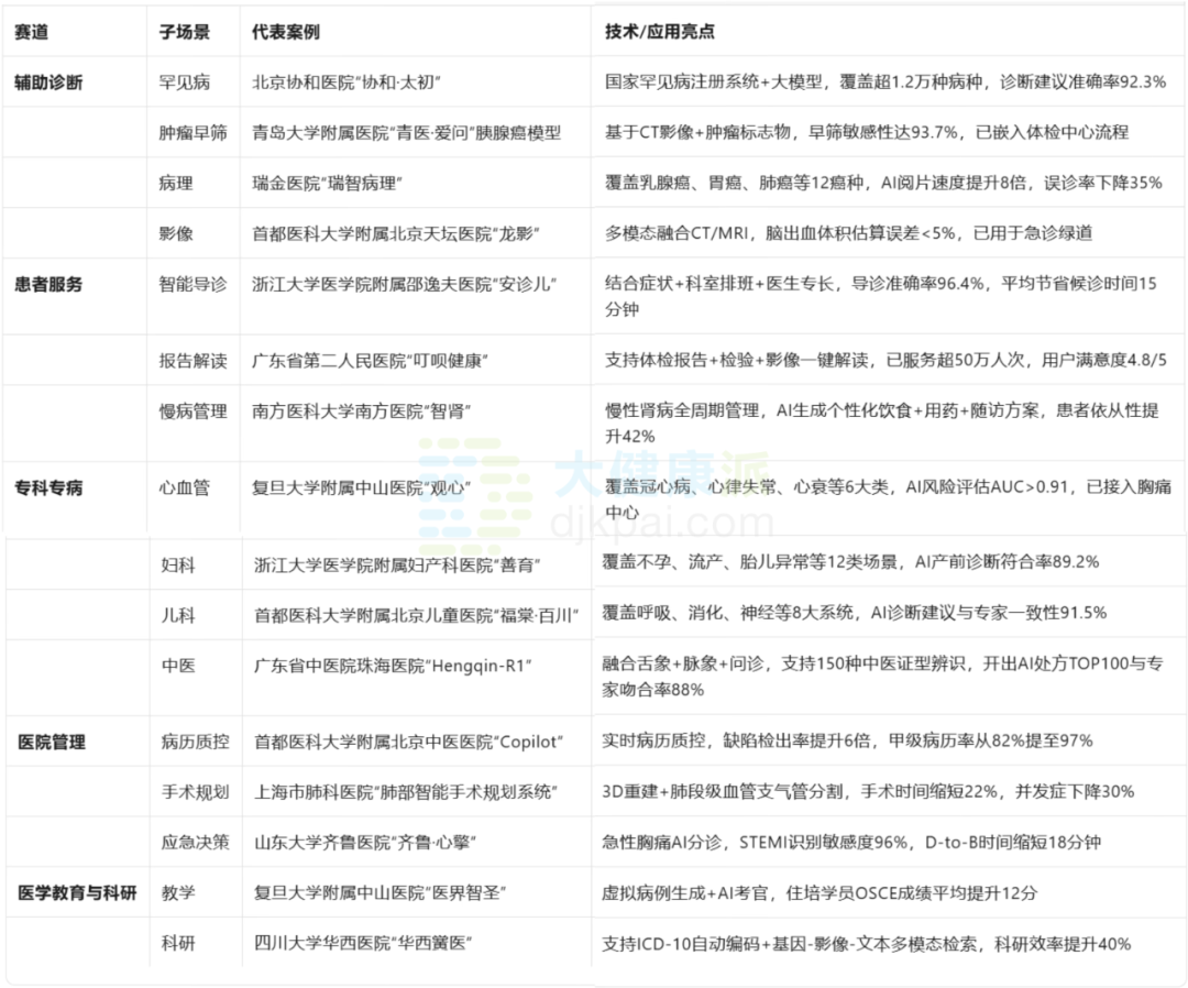 心血管领域:复旦大学附属中山医院的“观心”大模型和首都医科大学附属北京安贞医院的心血管专病诊断模型,覆盖了从基层筛查到复杂疾病诊断的全链路,其超声诊断合理率高达85%-90%,有效提升了心血管疾病的诊疗质量。