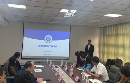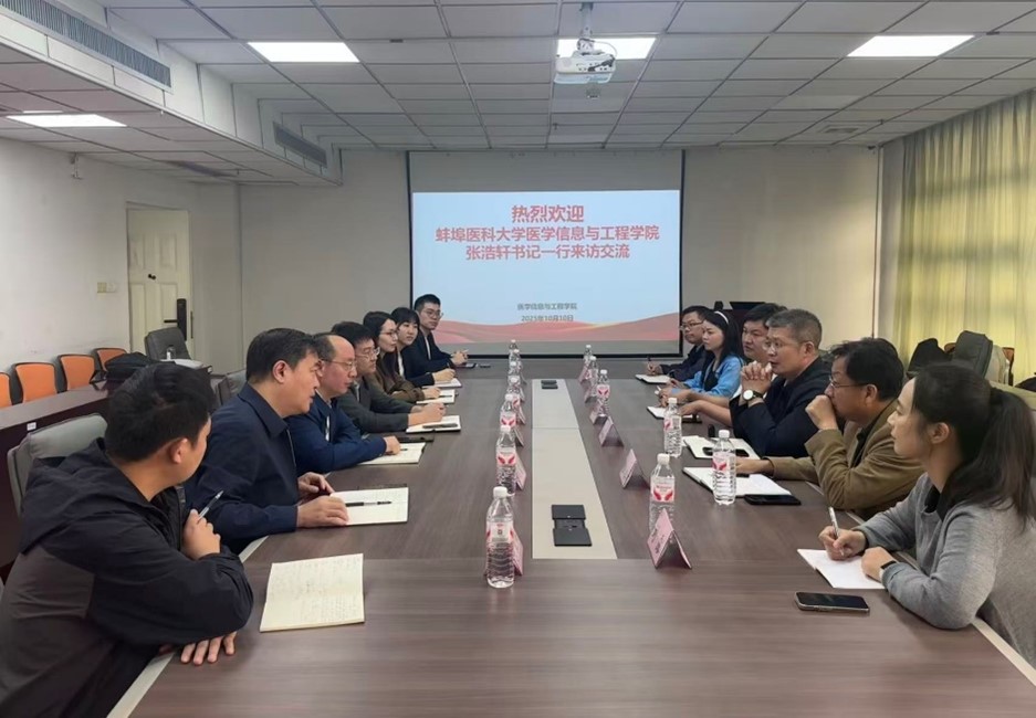10月10日,蚌埠医科大学医学信息与工程学院张浩轩书记一行莅临我院交流,我院党总支书记胡俊峰,副院长吴响、胡殿雷,党总支副书记张姝及各教研室主任代表参与座谈,座谈由胡俊峰主持。