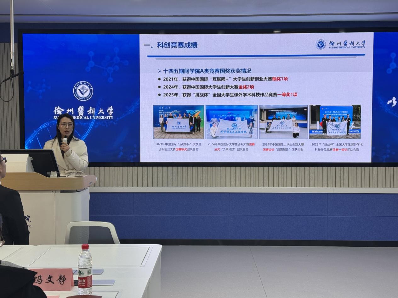 葛媛媛书记作总结发言。她充分肯定了医学信息与工程学院在“十四五”期间大学生科创工作中取得的成绩,认为学院科创工作特色鲜明、成效突出。葛书记指出,大学生科创竞赛是培养创新人才的重要载体,希望学院继续发挥医工交叉学科优势,加强顶层设计,完善激励机制,进一步营造浓厚的创新氛围,为学校建设国内一流高水平医科大学和创新型人才培养作出更大贡献。