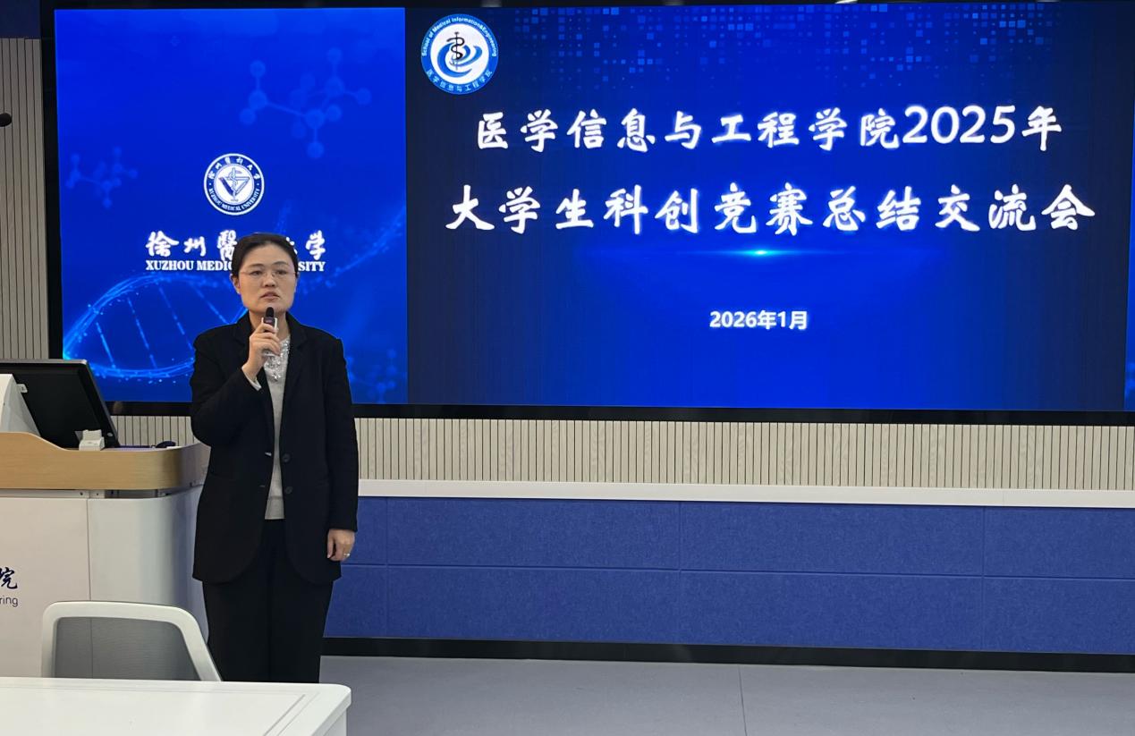 为全面总结学院在“十四五”期间科创育人成效,表彰优秀师生团队,并为2026年赛事蓄力启航。1月14日,医学信息与工程学院在主楼举办2025年大学生科创竞赛总结表彰会。校团委书记葛媛媛、院党总支书记冯文静、副院长吴响、跟岗锻炼副院长张然,学院各教研室主任、项目指导教师、教师及学生代表等参加会议。会议由党总支副书记张姝主持。
